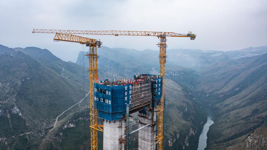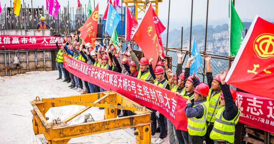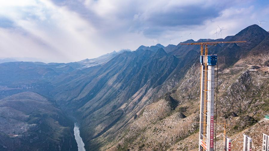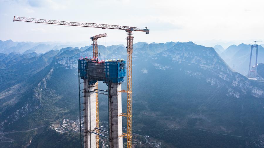 กุ้ยหยาง 26 ต.ค. — โครงการก่อสร้างสะพานข้ามแกรนด์แคนยอนฮวาเจียง ซึ่งจะเป็นสะพานที่มีความสูงมากที่สุดของโลก ณ มณฑลกุ้ยโจวทางตะวันตกเฉียงใต้ของจีน มีความคืบหน้าครั้งสำคัญหลังจากการก่อสร้างหอคอยหลักหลังสุดท้ายของสะพานเสร็จสิ้น เมื่อวันอังคาร (24 ต.ค.) ที่ผ่านมา