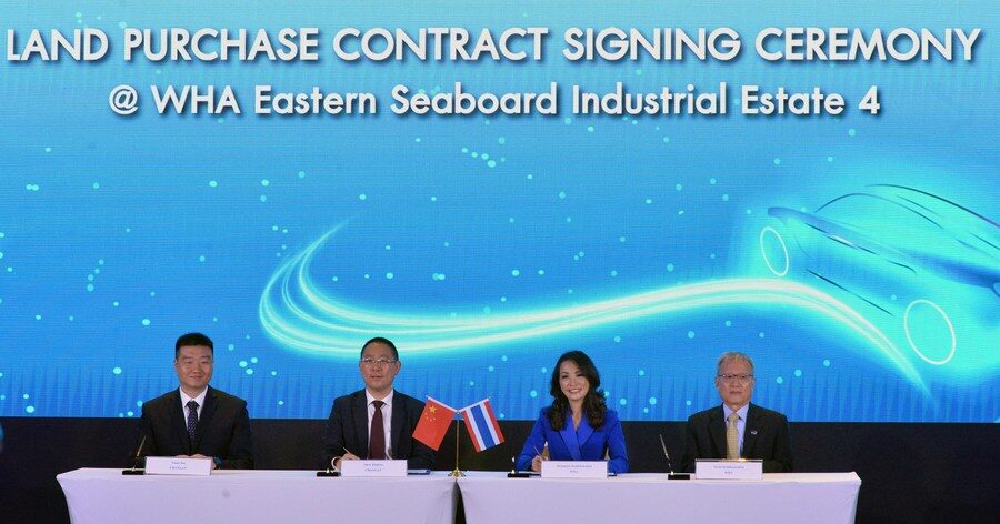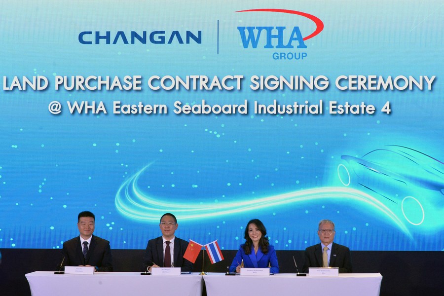 กรุงเทพฯ 27 ต.ค. – ฉางอาน ออโต (Changan Auto) ผู้ผลิตยานยนต์ของจีน ได้ลงนามสัญญาจัดซื้อที่ดินกับ ดับเบิลยูเอชเอ กรุ๊ป (WHA Group) นักพัฒนานิคมอุตสาหกรรมของไทย เมื่อวันพฤหัสบดีที่ผ่านมา เพื่อก่อสร้างโรงงานยานยนต์ไฟฟ้า (EV) แห่งใหม่ในจังหวัดระยอง