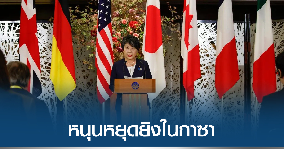 รัฐมนตรีต่างประเทศจี 7 ออกแถลงการณ์ร่วมหลังเสร็จสิ้นการประชุมวันที่ 2 ที่กรุงโตเกียวของญี่ปุ่นในวันนี้ว่า ที่ประชุมขอย้ำเรื่องความจำเป็นที่จะต้องเร่งดำเนินการเพื่อแก้ไขวิกฤตด้านมนุษยธรรมที่เลวร้ายลงในกาซา ด้วยการสนับสนุนให้มีการหยุดยิงและเปิดเส้นทางเพื่ออำนวยความสะดวกให้แก่ความช่วยเหลือที่จำเป็นเร่งด่วน การเคลื่อนย้ายพลเรือน และการปล่อยตัวประกัน