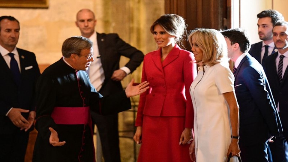 ปารีส 14 ก.ค.- นางเมลาเนีย ทรัมป์ สตรีหมายเลขหนึ่งสหรัฐเข้าเยี่ยมชมมหาวิหารนอเทรอดามที่กรุงปารีสร่วมกับนางบรีฌิต มาครง ภริยาประธานาธิบดีฝรั่งเศสในวันพฤหัสบดี โดยได้สวดมนต์ที่รูปปั้นพระแม่มารี
