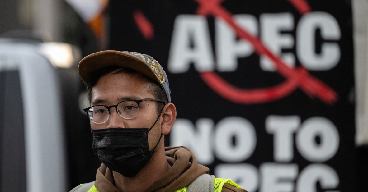 ซานฟรานซิสโก 13 พ.ย. – ผู้ประท้วงหลายร้อยคน จากหลากหลายกลุ่มตั้งแต่กลุ่มต่อต้านทุนนิยมไปจนถึงกลุ่มผู้สนับสนุนชาวปาเลสไตน์ รวมตัวกันที่นครซานฟรานซิสโก ของสหรัฐในวันอาทิตย์ ซึ่งเป็นวันก่อนเปิดการประชุมสุดยอดผู้นำเอเปค เพื่อประท้วงกลุ่มเอเปค