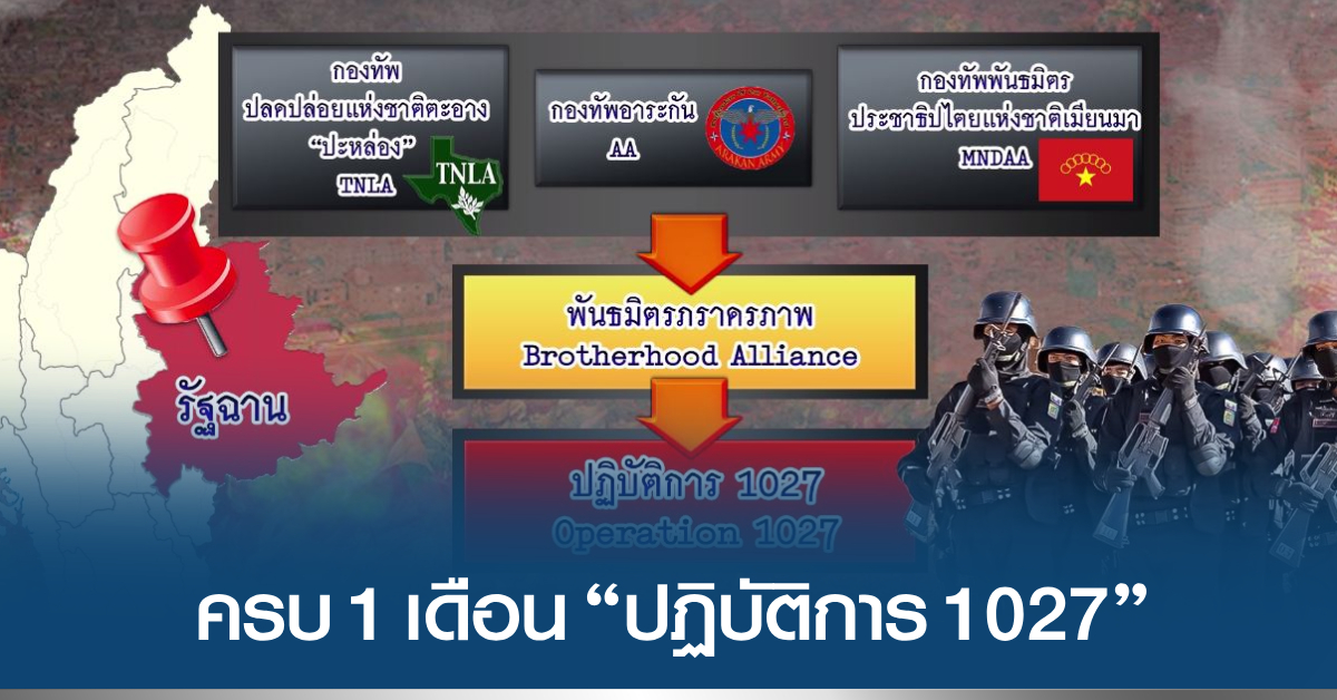 “ปฏิบัติการ 1027” เป็นชื่อปฏิบัติการของกองกำลังชาติพันธุ์ 3 กลุ่ม คือ กองทัพปลดปล่อยแห่งชาติตะอาง กองทัพอาระกัน และกองทัพพันธมิตรประชาธิปไตยแห่งชาติเมียนมา ที่รวมตัวกันเป็นพันธมิตรภราดรภาพ หรือ พันธมิตร 3 พี่น้อง เข้าโจมตีทหารและยึดเมืองต่างๆ ตั้งแต่วันที่ 27 ตุลาคม เริ่มจากเมืองชินฉ่วยฮ่อ เมืองยุทธศาสตร์สำคัญที่ติดกับมณฑลยูนนานของจีน จากนั้นก็รุกคืบยึดที่มั่นของทหารรัฐบาลมากมายอย่างต่อเนื่องเกือบ 200 แห่ง ส่วนที่เมืองเล่าก์ก่าย ศูนย์กลางธุรกิจมืด การพนัน และอาชญากรรมไซเบอร์ ที่มีคนไทยหลายร้อยคนเป็นเหยื่อหรือเข้าไปพัวพัน ก็มีการสู้รบหนักหน่วง