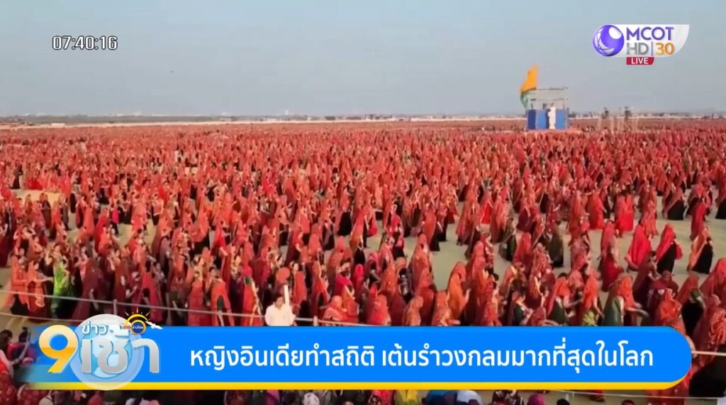 ภาพมุมสูงที่บันทึกจากโดรน เผยให้เห็นการแสดงสุดพิเศษที่เรียกว่า มหา ราส (Maha Raas) หรือ ‘เกรท ราส’ (Great Raas) ซึ่งเป็นการเต้นรำครั้งใหญ่ มีผู้หญิงชาวอาฮีร์ ประมาณ 37,000 คน พร้อมใจกันสวมชุดส่าหรีสีแดง ส้ม และดำ ตัดกับพื้นทรายสีทอง อย่างสวยงาม จับกลุ่มเต้นรำเป็นวงกลมขนาดใหญ่ บนบานทรายกว้างกลางแจ้งในเมืองทวารกา รัฐคุชราต ทางตะวันตกของอินเดีย เมื่อวันอาทิตย์ที่ผ่านมา