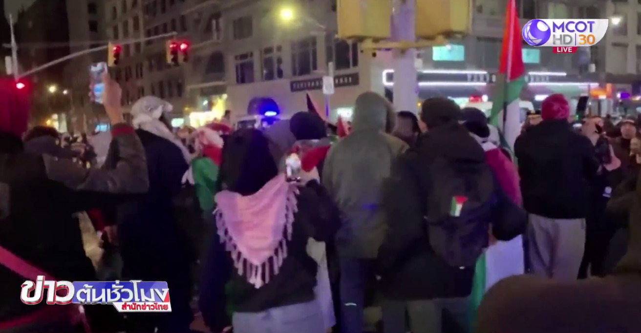 สหรัฐ 26 ธ.ค. – เกิดเหตุปะทะระหว่างกลุ่มผู้ประท้วงหนุนปาเลสไตน์กับตำรวจในนครนิวยอร์ก มีเจ้าหน้าที่ได้รับบาดเจ็บเล็กน้อย 1 คน และมีผู้ประท้วงหลายคนถูกคุมตัวไปขัง