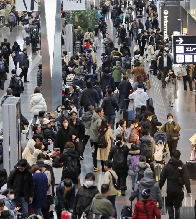 โตเกียว 29 ธ.ค. – ชาวญี่ปุ่นจำนวนมากพากันไปที่สนามบินและสถานีรถไฟสำคัญ ๆ ในญี่ปุ่นในวันนี้ เพื่อเดินทางกลับไปยังบ้านเกิดในช่วงวันหยุดปีใหม่ ซึ่งเป็นช่วงเทศกาลปีใหม่ครั้งแรก หลังจากรัฐบาลปรับลดมาตรการควบคุมการระบาดของโรคโควิด-19 ให้อยู่ในระดับเดียวกับไข้หวัดใหญ่