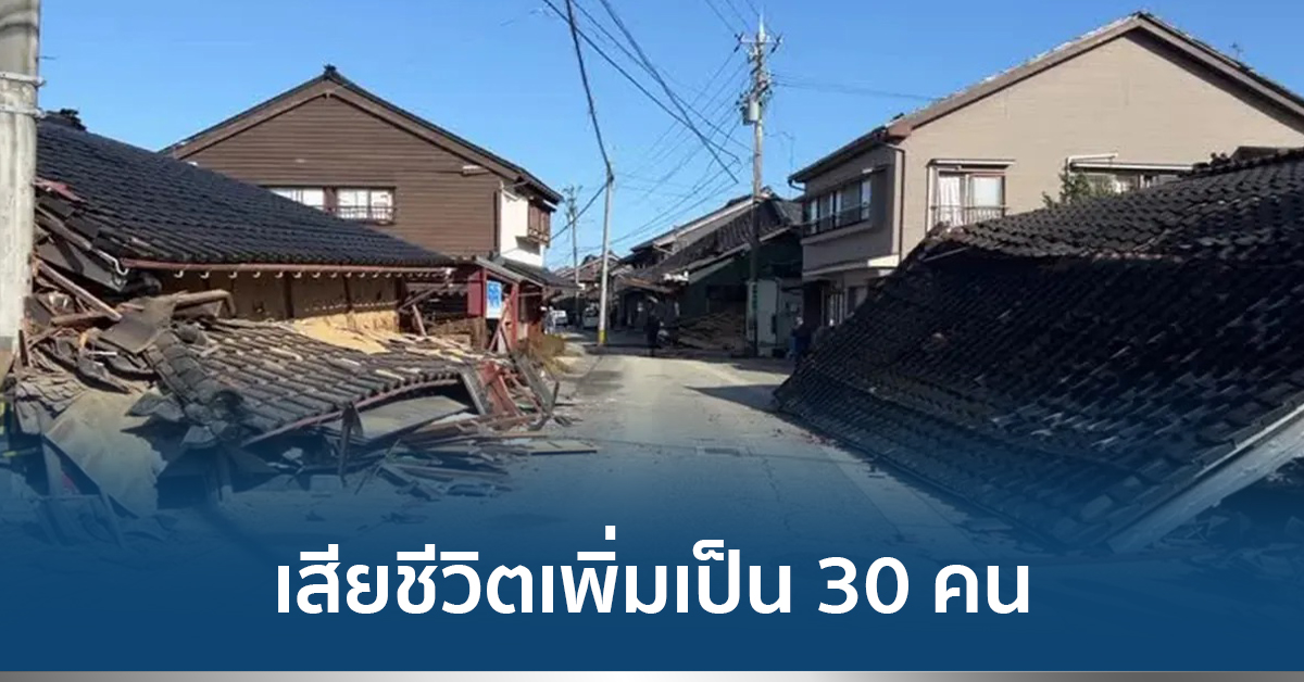 แผ่นดินไหวขนาด 7.6 เกิดขึ้นทางตอนกลางของญี่ปุ่นเมื่อวันขึ้นปีใหม่ เจ้าหน้าที่พบผู้ชีวิตเพิ่มขึ้นเป็นอย่างน้อย 30 คนแล้ว ทั้งหมดอยู่ในจังหวัดอิชิกาวะ ซึ่งเป็นพื้นที่ได้รับความเสียหายหนักที่สุด โดยที่เมืองวาจิมะ ของจังหวัดนี้ มีอาคารและบ้านเรือนพังถล่มราว 25 หลัง ในจำนวนนี้ 14 หลังเชื่อว่ามีคนติดอยู่ด้านใน และยังมีอาคารและบ้านเรือนราว 200 หลังถูกไฟไหม้มาตั้งแต่วันที่เกิดแผ่นดินไหวจนถึงบ่ายวันนี้ หน่วยดับเพลิงยังควบคุมไม่ได้หมด แม้ส่วนใหญ่ควบคุมได้แล้ว ส่วนขนส่งมวลชนระบบรางในพื้นที่ เริ่มกลับมาเปิดบริการได้บ้างแล้ว.-810(814).-สำนักข่าวไทย