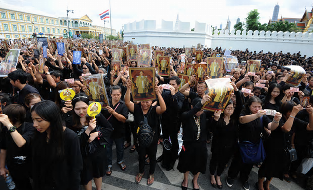 เอเอฟพีรายงานว่า พระบาทสมเด็จพระปรมินทรมหาภูมิพลอดุลยเดชทรงเป็นที่เคารพรักเทิดทูนยิ่งของปวงชนชาวไทย พสกนิกรสวมชุดไว้ทุกข์หลั่งไหลไปถวายสักการะพระบรมศพเบื้องหน้าพระบรมฉายาลักษณ์ที่พระบรมมหาราชวังตลอด 2 สัปดาห์ที่ผ่านมาหลังจากพระองค์สวรรคตเมื่อวันที่ 13 ตุลาคม และวันนี้เป็นวันแรกที่เปิดให้ประชาชนกราบถวายสักการะเบื้องหน้าพระโกศพระบรมศพ โดยอนุญาตให้เข้าวันละ 10,000 คน