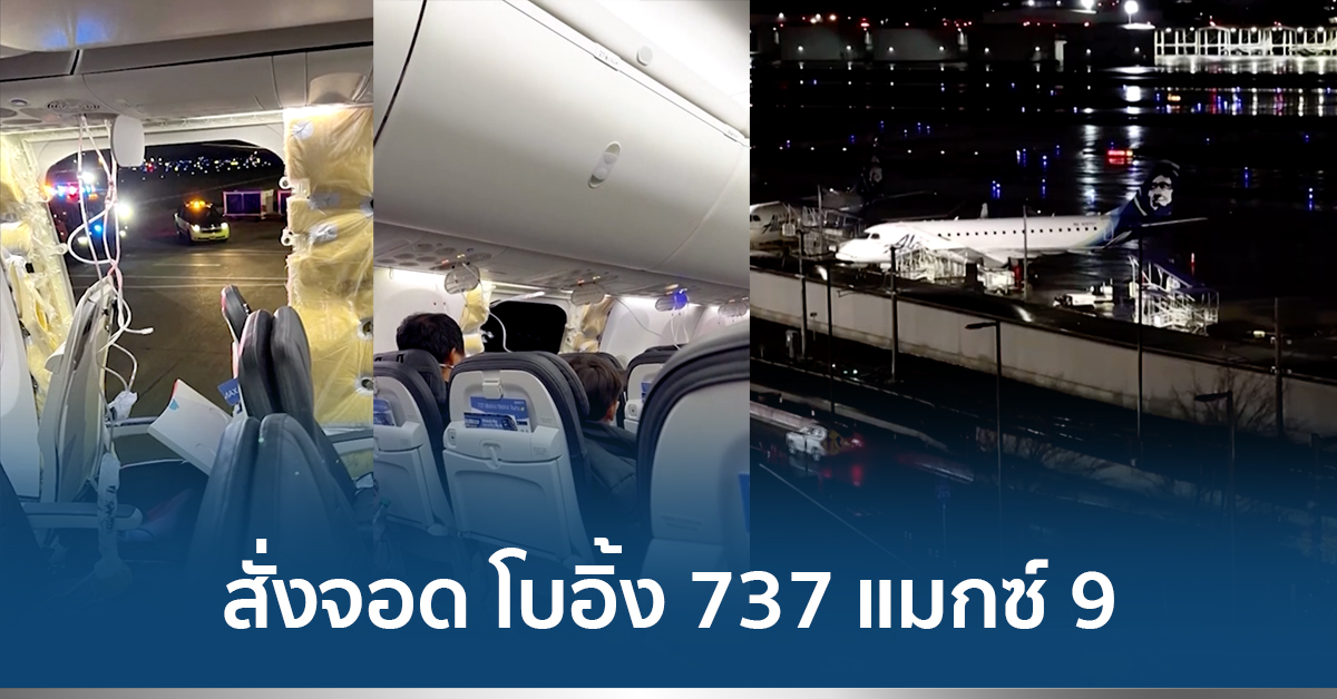 สหรัฐ 7 ม.ค.- เอฟเอเอของสหสรัฐ สั่งจอดเครื่องบินโบอิ้ง 737 แม็กซ์ 9 และห้ามให้บริการผู้โดยสารทันที เพื่อตรวจสอบความปลอดภัย หลังชิ้นส่วนหลุดกลางอากาศ