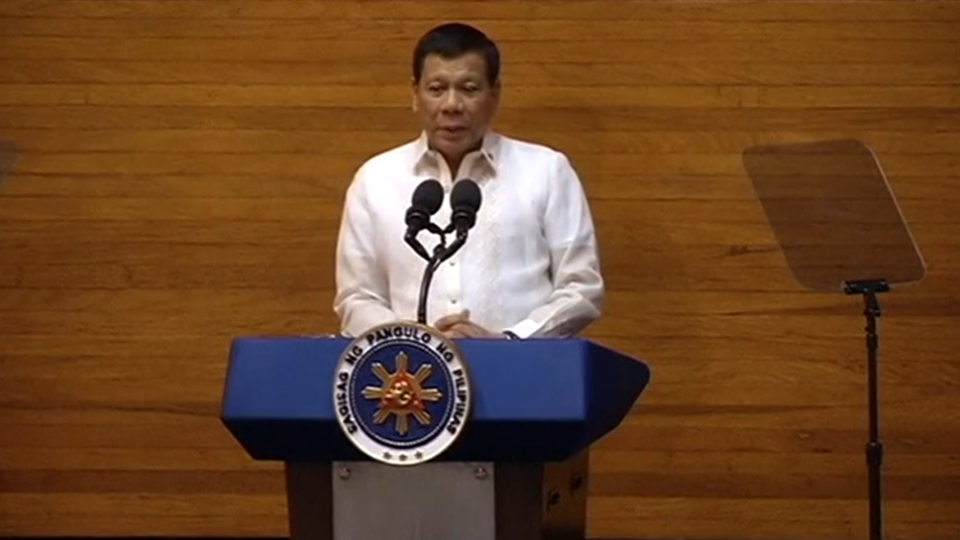 ประธานาธิบดีดูเตอร์เตแถลงนโยบายและผลงานประจำปีต่อรัฐสภาเป็นครั้งที่ 2 กล่าวถึงกรณีการก่อเหตุโจมตีหน่วยงานของรัฐบาลหลายครั้ง โดยฝีมือของกองทัพประชาชนใหม่ (เอ็นพีเอ) ซึ่งเป็นฝ่ายกบฏ ระบุว่า เขาจะจัดการกับศัตรูของประเทศทุกคน ในเมื่อฝ่ายตรงข้ามไม่ต้องการพูดคุย เขาก็ยินดีที่จะไม่เจรจาเช่นกัน ตาต่อตาฟันต่อฟัน ปล่อยให้สงครามที่ฝ่ายกบฏเป็นผู้เริ่มต้นขึ้นเมื่อ 50 ปีที่แล้ว ดำเนินต่อไปอีก 50 ปี จากนี้เขาต้องการขยายกำลังพลอีกหลายหมื่นนาย อาจจะประมาณ 35,000-40,000 นาย เพื่อรับมือกับภัยคุกคามในอนาคตจากทั้งภายในประเทศและนอกประเทศ
