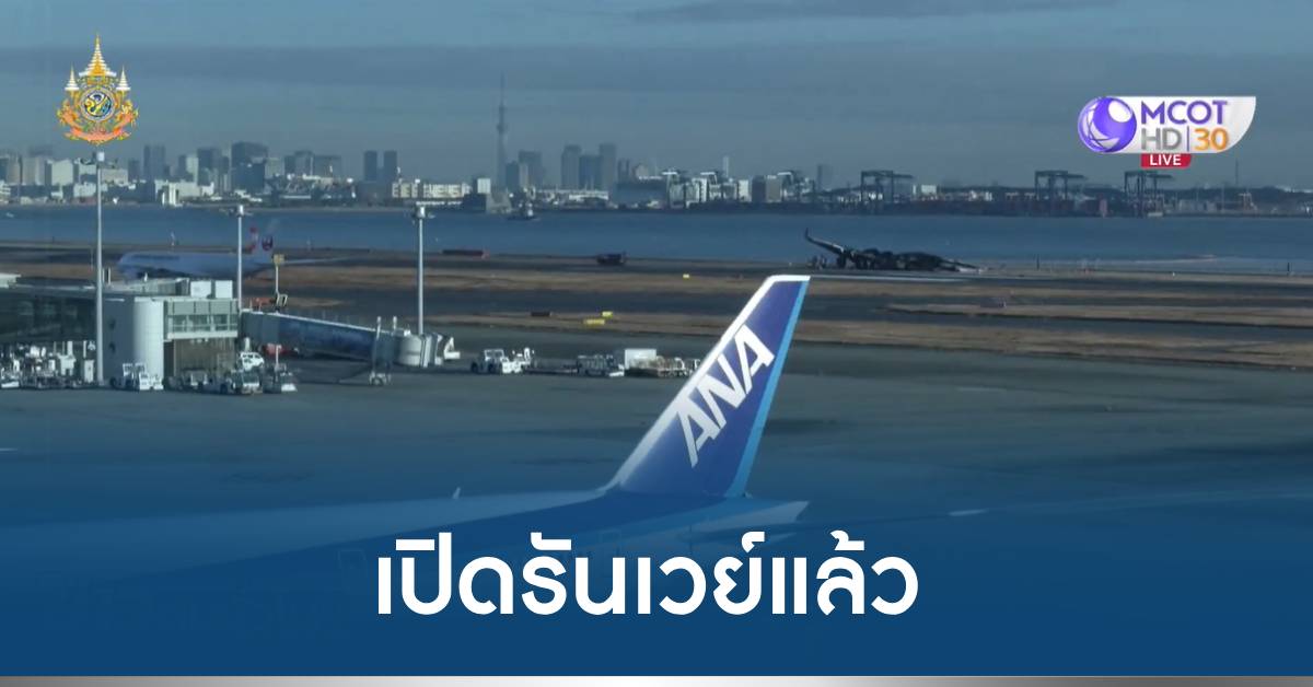 ญี่ปุ่น 8 ม.ค.-สนามบินฮาเนดะ เปิดใช้งานรันเวย์ที่เกิดอุบัติเหตุเครื่องบินชนกันอีกครั้ง หลังย้ายซากเครื่องบินทั้งสองลำออกไป และซ่อมแซมความเสียหายเสร็จสิ้น
