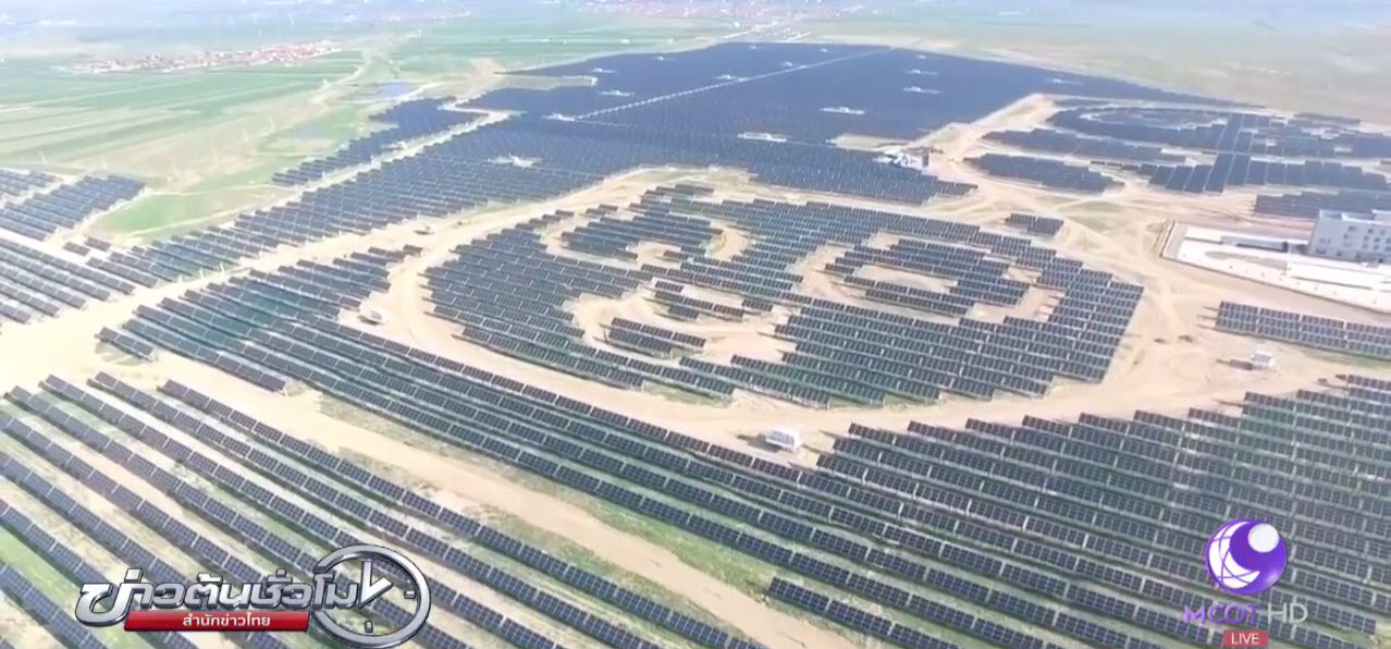 สำหรับโซลาร์ฟาร์มรูปแพนด้า ทางตอนเหนือของมณฑลส่านซี สร้างเสร็จเรียบร้อยแล้ว และบริษัทกำลังก่อสร้างโซลาร์ฟาร์มในมณฑลส่านซีอีกเป็นแห่งที่ 2. – สำนักข่าวไทย