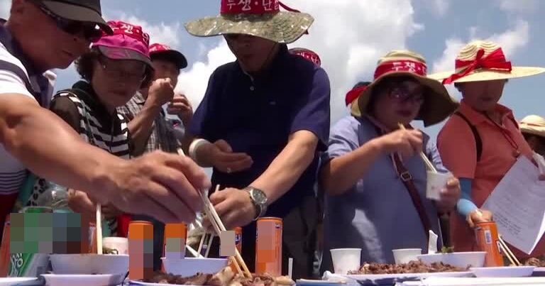 ที่ผ่านมาความพยายามห้ามรับประทานและจำหน่ายเนื้อสุนัขในเกาหลีใต้เผชิญกระแสประท้วงจากผู้เพาะเลี้ยงสุนัขเพื่อรับประทาน โดยเมื่อเดือนพฤศจิกายน 2566 มีผู้เพาะเลี้ยง 200 คนไปชุมนุมประท้วงใกล้ทำเนียบประธานาธิบดี.-814.-สำนักข่าวไทย