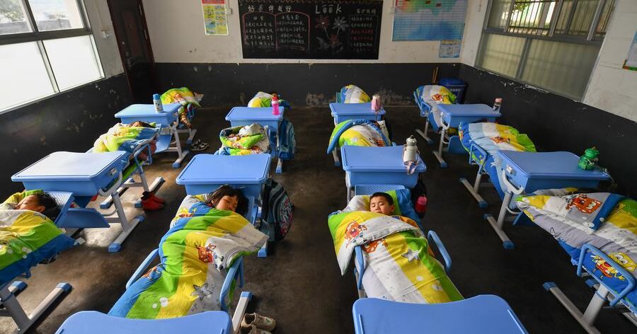 สำนักข่าวซินหัวของทางการจีนรายงานพร้อมกับเผยแพร่ภาพชุดหนึ่งว่า เก้าอี้พับปรับนอนได้เหล่านี้ถูกนำมาใช้งานเพื่อเด็กนักเรียนสามารถงีบหลับตอนกลางวัน ซึ่งจะช่วยยกระดับคุณภาพการนอนหลับของเด็กนักเรียนอย่างมาก.-814.-สำนักข่าวไทย