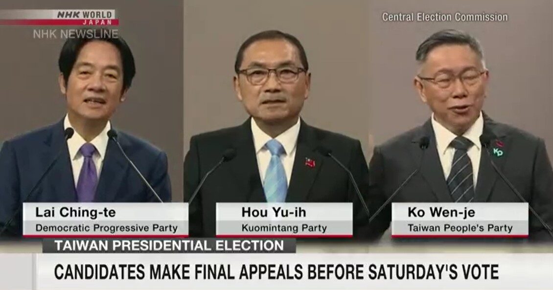 ไทเป 12 ม.ค.- ผู้สมัครชิงตำแหน่งประธานาธิบดีไต้หวัน 3 คน หาเสียงวันสุดท้ายในวันนี้ หวังได้รับคะแนนเสียงในการเลือกตั้งที่จะมีขึ้นในวันเสาร์ที่ 13 มกราคมนี้