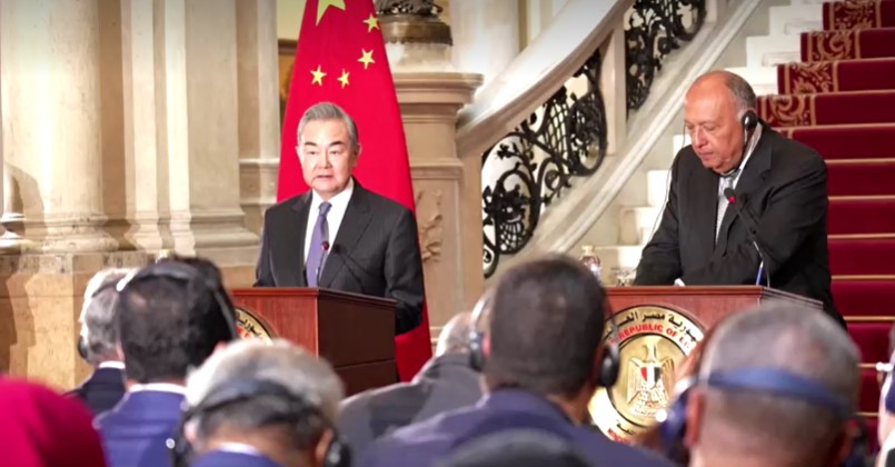 นายหวังกล่าวระหว่างแถลงข่าวร่วมกับนายซาเมห์ ชูครี รัฐมนตรีต่างประเทศอียิปต์ หลังจากพบหารือกันที่กรุงไคโรของอียิปต์เมื่อวันอาทิตย์ว่า ประชาคมโลกควรจะรับฟังอย่างใส่ใจต่อความกังวลอันชอบธรรมในตะวันออกกลาง จีนขอเรียกร้องให้จัดการประชุมสันติภาพที่เป็นการประชุมใหญ่ขึ้น มีอำนาจมากขึ้น และมีประสิทธิภาพมากขึ้น ขอเรียกร้องให้กำหนดตารางเวลาและแผนดำเนินงานที่ชัดเจนในการปฏิบัติตามทางออก 2 รัฐ และขอสนับสนุนให้ฟื้นการเจรจาสันติภาพอิสราเอล-ปาเลสไตน์โดยทันที