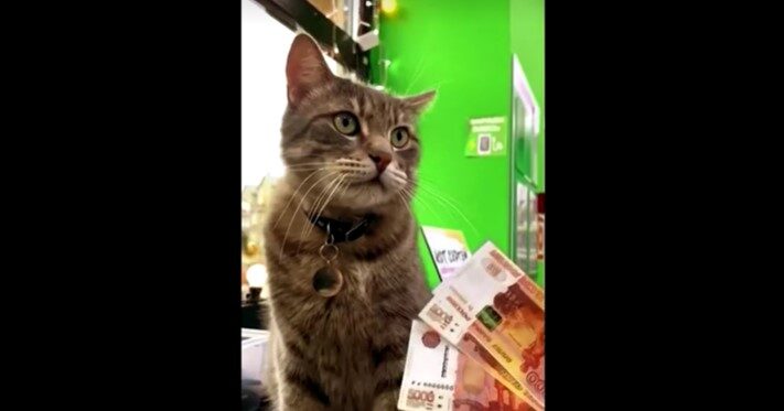 ผู้จัดการร้านขายของชำในเมืองเซเลโนกราดสค์เผยว่า พวกเธอตั้งชื่อแมวเพศผู้ตัวนี้ว่า “เซอร์เก” เพราะมีขนสีเทาและมีตาคล้ายคน มันเป็นสัตว์เลี้ยงของสตรีสูงวัยคนหนึ่ง แต่ต้องไร้ที่อยู่เมื่อเจ้าของถึงแก่กรรม เซอร์เกแวะเวียนมาขออาหาร จนกระทั่งกลายเป็นพนักงานคนหนึ่งของร้านตั้งแต่ 3 ปีที่แล้ว และกลายเป็นแมวดังประจำเมืองเมื่อมีคนนำคลิปไปเผยแพร่ในสื่อสังคมออนไลน์ มีคนนำไปถ่ายโฆษณาหลายชิ้นและได้ถ่ายภาพลงปฏิทินด้วย