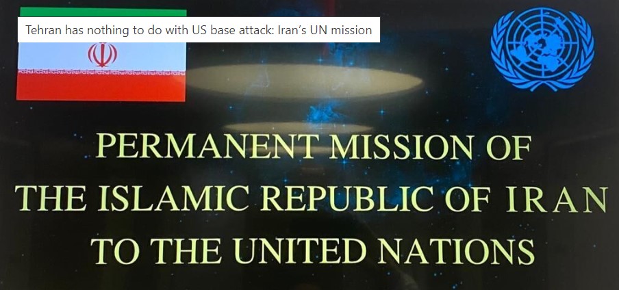 สำนักข่าวไออาร์เอ็นเอ (IRNA) ของทางการอิหร่านเผยแพร่แถลงการณ์ของคณะผู้แทนถาวรอิหร่านฯ ที่แถลงเมื่อค่ำวันที่ 28 มกราคมว่า อิหร่านไม่มีความเชื่อมโยงและไม่มีส่วนเกี่ยวข้องกับการโจมตีฐานทัพสหรัฐ กองกำลังสหรัฐมีความขัดแย้งอยู่แล้วกับกลุ่มต่อต้านในภูมิภาคนี้ ซึ่งตอบโต้ด้วยการโจมตีแก้แค้น