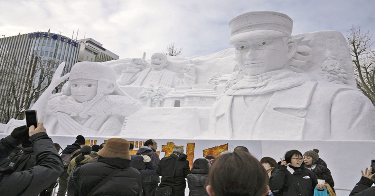 เทศกาลหิมะซัปโปโร ครั้งที่ 74 เป็นหนึ่งในเทศกาลหิมะใหญ่ที่สุดของญี่ปุ่น จัดขึ้นใน 3 สถานที่ของเมืองซัปโปโรที่เป็นเมืองใหญ่ที่สุดของจังหวัดฮอกไกโด ตั้งแต่วันนี้จนถึงวันที่ 11 กุมภาพันธ์ มีประติมากรรมหิมะและน้ำแข็งจัดแสดงราว 190 ชิ้น หลายชิ้นเป็นผลงานของคนในพื้นที่ สถานที่หลักคือ สวนสาธารณะโอโดริ มีประติมากรรมสูง 12 เมตร แกะสลักภาพตัวละครจากโกลเดน คามุย (Golden Kamuy) อนิเมะจากมังงะแนวแอ็กชันอิงประวัติศาสตร์