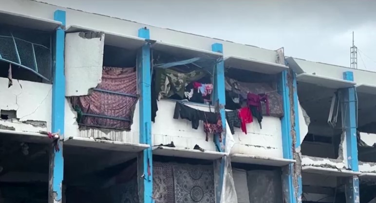 ผู้พลัดถิ่นหลายครอบครัวพากันเข้าไปอาศัยในโรงเรียนประถมศึกษาแห่งหนึ่งในค่ายผู้ลี้ภัยจาบาเลีย ทางตอนเหนือของกาซา หลังจากกองทัพอิสราเอลถอนกำลังออกจากพื้นที่ โรงเรียนแห่งนี้ถูกอิสราเอลถล่มเสียหายหนักในช่วงหลายสัปดาห์ที่ผ่านมา ผู้พลัดถิ่นเผยว่า โรงเรียนที่ไม่เสียหายล้วนมีคนอาศัยจนเต็ม ขณะที่เต็นท์ก็มีไม่เพียงพอ พวกเขาจึงเหลือทางเลือกเดียวคือ พักอาศัยตามอาคารที่เสียหาย แม้รู้ดีว่าไม่ปลอดภัยก็ตาม.-814.-สำนักข่าวไทย