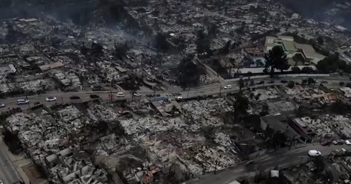 ไฟป่าที่โหมแรงขึ้นเมื่อวันศุกร์กำลังไหม้ลามอยู่นอกเมืองบิญญา เดล มาร์และเมืองบัลปาไรโซ ซึ่งเป็น 2 เมืองท่องเที่ยวริมชายฝั่งยอดนิยม อยู่ทางตะวันตกของกรุงซันติอาโก และมีคนอาศัยอยู่ในตัวเมืองรวมกันมากกว่า 1 ล้านคน