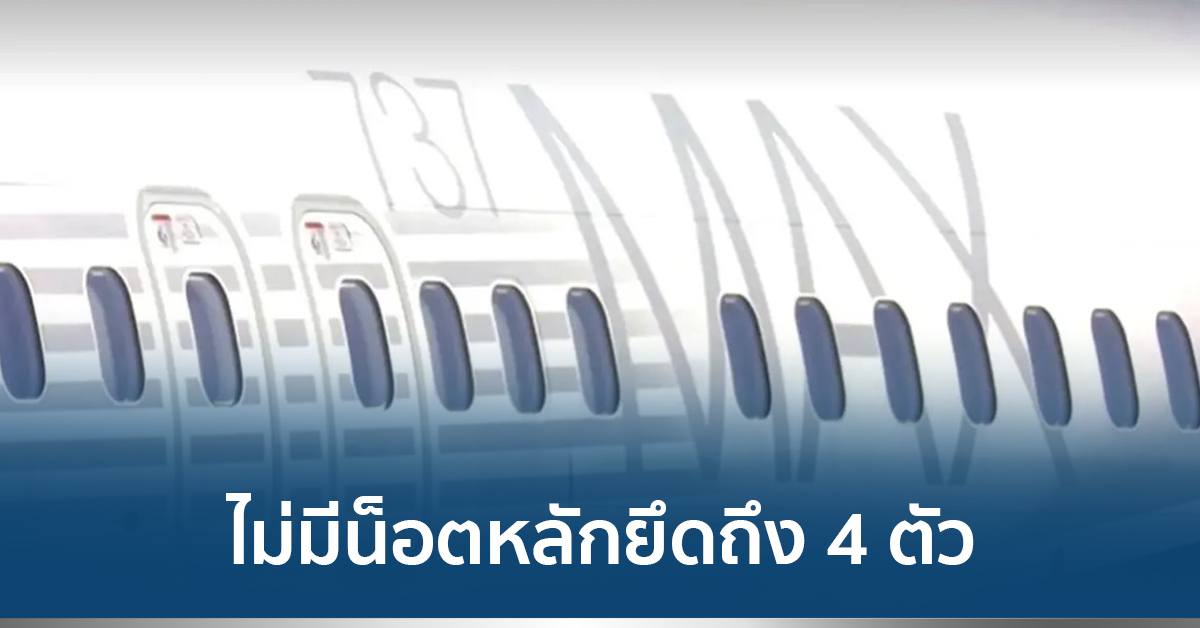 วอชิงตัน 7 ก.พ.- รายงานการสืบสวนฉบับใหม่เหตุเครื่องบินโบอิง 737 แม็กซ์ 9 แผ่นปิดประตูหลุดกลางอากาศทำให้ต้องลงจอดฉุกเฉินเมื่อเดือนมกราคมพบว่า แผ่นประตูบานนี้ไม่มีน็อตหลักยึดถึง 4 ตัว