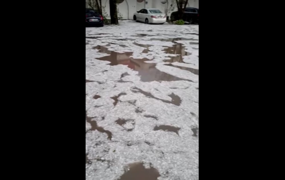 อาบูดาบี 13 ก.พ.- ลูกเห็บขนาดใหญ่ตกปกคลุมทั่วลานจอดรถแห่งหนึ่งในสหรัฐอาหรับเอมิเรตส์หรือยูเออี (UAE) เมื่อวานนี้ เป็นปรากฏการณ์ทางธรรมชาติที่เกิดขึ้นไม่บ่อยครั้งนักในพื้นที่นี้