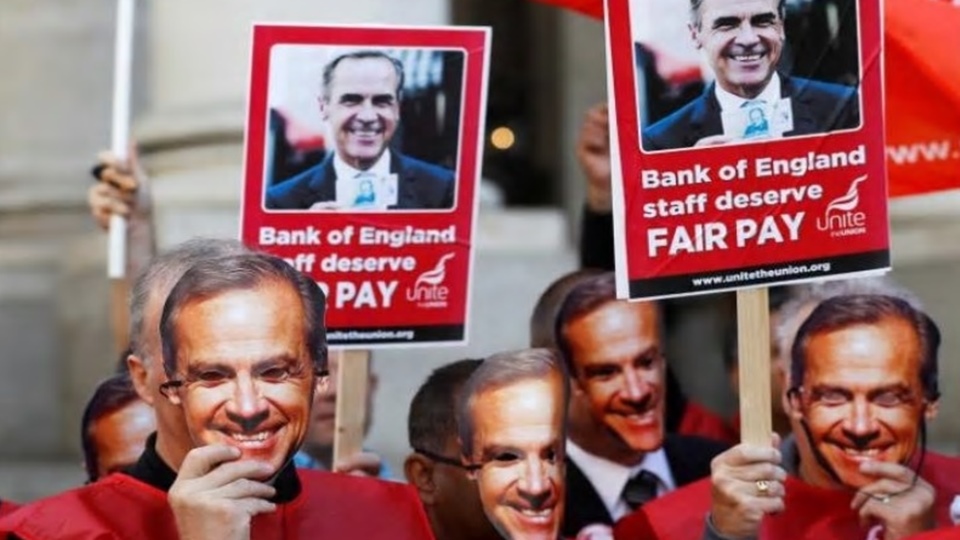 สหภาพแรงงานแจ้งว่า พนักงานฝ่ายซ่อมบำรุง รักษาความปลอดภัย และต้อนรับส่วนหน้าราว 150 คนเริ่มผละงานในวันนี้เพราะไม่พอใจที่ได้ค่าจ้างต่ำกว่าอัตราเงินเฟ้อมาเป็นปีที่สองติดต่อกัน ขอให้นายมาร์ก คาร์นีย์ ผู้ว่าการธนาคารกลางเข้ายุติเรื่องนี้ด้วยตนเองด้วยการชี้แจงว่า เหตุใดพนักงานที่ทำงานหนักจึงได้รับค่าจ้างต่ำกว่าอัตราเงินเฟ้อหรือไม่มีการขึ้นเงินเดือนเลยจนแทบไม่พอเลี้ยงดูครอบครัว และขอให้ผู้ว่าการธนาคารกลางเจรจาพูดคุยทำข้อตกลงค่าจ้างที่เป็นธรรม เพราะหากไม่มีความคืบหน้าใด ๆ ก็จะเพิ่มการเคลื่อนไหวต่อสู้ด้านอุตสาหกรรมมากขึ้นไปอีก