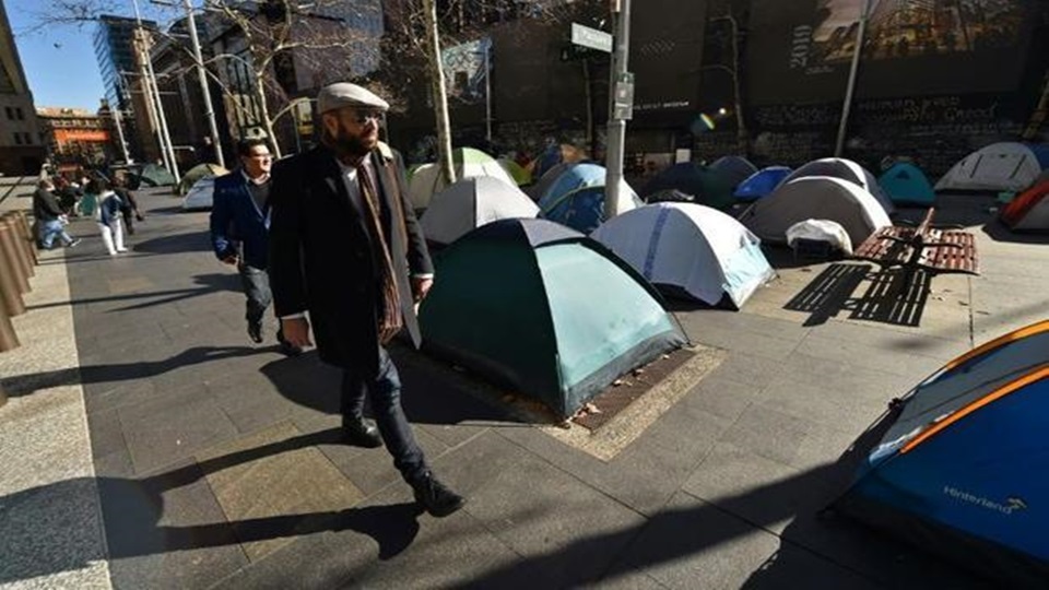 คนไร้บ้านกว่า 50 คนลงหลักปักฐานอาศัยอยู่บริเวณย่านธุรกิจมาร์ตินเพลส ซึ่งเป็นสถานที่ตั้งของธนาคารกลางออสเตรเลีย ขณะที่บริเวณใจกลางนครซิดนีย์ขณะนี้ มีผู้มากางเต็นท์นอนแล้วกว่า 400 คน นางโคลเวอร์ มัวร์ นายกเทศมนตรีนครซิดนีย์ตำหนิรัฐบาลรัฐนิวเซาท์เวลส์ว่า ขี้ขลาดและเพิกเฉยต่อการแก้ปัญหาเรื่องผู้ไร้ที่อยู่อาศัย ส่งผลให้มีจำนวนผู้เข้ามาพักอาศัยอยู่ใจกลางเมืองเพิ่มมากขึ้นเรื่อยๆ เธอกล่าวว่า ทางการซิดนีย์ไม่มีอำนาจในการโยกย้ายผู้คนออกจากพื้นที่ เพราะพวกเขาล้วนต้องกลายเป็นคนไร้บ้านจากวิกฤตราคาบ้านพุ่งสูงในเมือง แต่รัฐบาลสามารถที่จะจัดหาบ้านราคาถูกให้พวกเขาได้