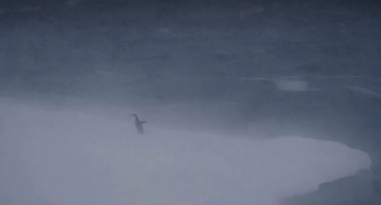 นอกจากนี้ ยังได้พบเห็นนกเพนกวินตัวหนึ่งกำลังเร่งรีบฝ่าพายุ เพื่อค้นหาที่กำบังจากสภาพอากาศ แม้จะบินไม่ได้ แต่นกทะเลเหล่านี้ก็เป็นนักว่ายน้ำที่เชี่ยวชาญ โดยทั่วไปแล้วเพนกวินจะแบ่งเวลาระหว่างอยู่ในทะเลและบนบกเท่า ๆ กัน แอนตาร์กติกามีนกเพนกวินเจ็ดสายพันธุ์.-815(814).-สำนักข่าวไทย