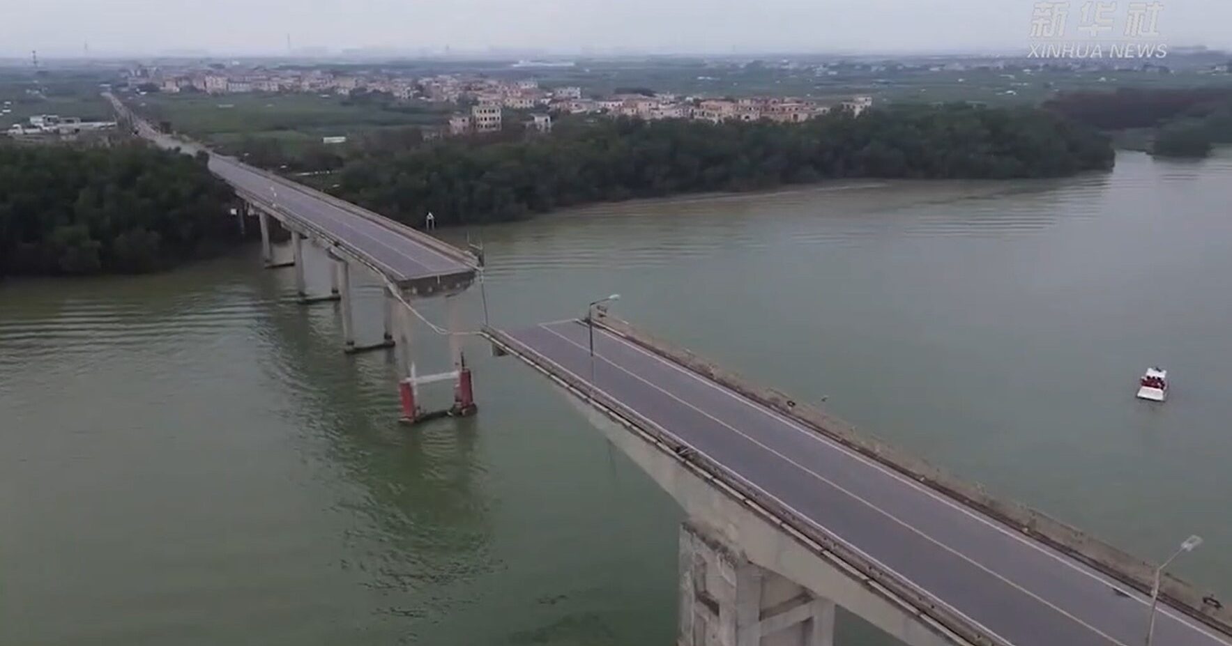 สำนักข่าวซินหัวของทางการจีนรายงานว่า อุบัติเหตุเกิดขึ้นราวเวลา 05.30 น.วันนี้ตามเวลาท้องถิ่น เมื่อเรือตู้คอนเทนเนอร์ชนกับตอม่อสะพานลี่ซินซาในเขตหนานซา มียานพาหนะ 5 คัน รวมถึงจักรยานยนต์ ร่วมประสบอุบัติเหตุครั้งนี้ด้วย