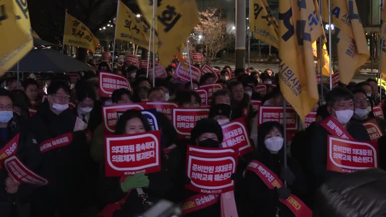 สำนักสำรวจแกลลัพโคเรียสอบถามความเห็นชาวเกาหลีใต้พบว่า ผู้ตอบร้อยละ 76 สนับสนุนแผนการของรัฐบาลเรื่องเพิ่มการรับนักศึกษาแพทย์เพื่อแก้ปัญหาขาดแคลนแพทย์ แต่แพทย์ฝึกหัดที่ลาออกและนัดหยุดงานประท้วงแย้งว่า ปัญหาที่แท้จริงคือเรื่องค่าจ้างและสภาพการทำงาน กระทรวงสาธารณสุขเกาหลีใต้แจ้งว่า นับจนถึงขณะนี้มีแพทย์ฝึกหัดประท้วงมากกว่า 8,400 คน คิดเป็นร้อยละ 64 ของแพทย์ฝึกหัดและแพทย์ประจำบ้านทั้งประเทศ