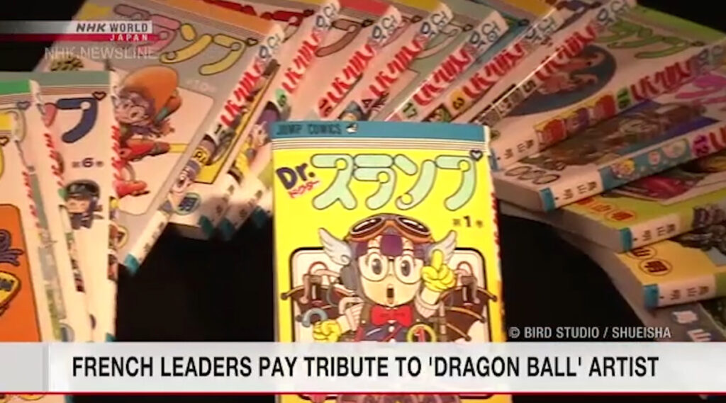 ประธานาธิบดีเอมมานูเอล มาครง ของฝรั่งเศส ร่วมไว้อาลัยการเสียชีวิตของโทริยามา อากิระ นักเขียนการ์ตูนมังงะ ชื่อดังชาวญี่ปุ่น เจ้าของผลงานเรื่อง ดรากอนบอล และ ดร.สลัม กับหนูน้อยอาราเล่ ที่เสียชีวิต เมื่อวันที่ 1 มี.ค.ที่ผ่านมา