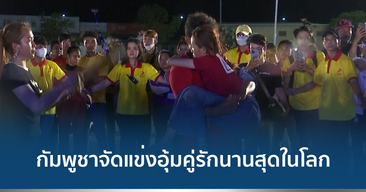 กัมพูชาจัดแข่งอุ้มคู่รักบันทึกสถิติโลก มีสามีภรรยาเข้าร่วมเกือบ 250 คู่ โดยจัดขึ้นเพื่อเชิดชูบทบาทสตรีในชีวิตของผู้ชาย เนื่องในวันสตรีสากล ระหว่างนี้มีสามีภรรยาบางคู่ถึงกับเป็นลมเพราะความเหนื่อยล้า ขณะที่ผู้ชนะเป็นสามีภรรยาจากจังหวัดกัมปอต ทางตะวันตกเฉียงใต้ ทำสถิติโลกอุ้มภรรยานาน 8 ชั่วโมง กับอีก 20 นาที ได้เป็นเจ้าของสถิติโลกในหนังสือกินเนสส์บุ๊ค และรับรางวัลเป็นรถเก๋ง ส่วนอันดับ 2-4 ได้รับมอเตอร์ไซค์ และอันดับอื่นๆ ได้รับเงินสด เป็นรางวัล กิจกรรมครั้งนี้ยังทำสถิติโลกได้เพิ่มอีกสาขา คือมีคู่สามีภรรยาร่วมแข่งอุ้มคู่รักพร้อมกันจำนวนมากที่สุดในโลก.-สำนักข่าวไทย