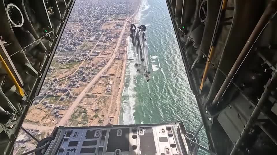 กาซา ซิตี้ 9 มี.ค. – กระทรวงกลาโหมสหรัฐเผยแพร่วิดีโอเมื่อวันพฤหัสบดีที่ผ่านมา ซึ่งแสดงให้เห็นภาพทหารอากาศสหรัฐดำเนินการส่งความช่วยเหลือทางมนุษย์ธรรมทางอากาศไปให้กับชาวเมืองในฉนวนกาซา