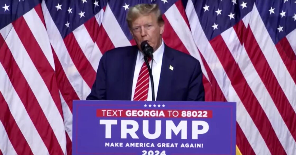ทรัมป์ วัย 77 ปี กล่าวในการหาเสียงที่รัฐจอร์เจียเมื่อวันเสาร์ตามเวลาท้องถิ่นว่า เมื่อไม่กี่คืนก่อนทุกคนได้ฟังการปราศรัยแถลงผลงานและนโยบายประจำต่อรัฐสภาหรือสเตทออฟเดอะยูเนียน (State of the Union) ของไบเดนที่เต็มไปด้วยความโกรธเกลียด ไบเดนเป็นภัยต่อประชาธิปไตยจากการที่นำรัฐบาล สำนักสอบสวนกลางหรือเอฟบีไอ และกระทรวงยุติธรรมมาใช้เป็นอาวุธ เป็นคนที่ไร้ความสามารถอย่างสิ้นเชิง ปราศรัยสุนทรพจน์ที่ทำให้เกิดการแบ่งฝักแบ่งฝ่ายและสุดโต่งอย่างที่ไม่เคยมีประธานาธิบดีคนใดทำมาก่อน