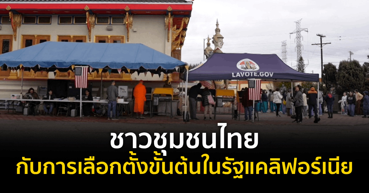 สหรัฐ 10 มี.ค. – ผู้มีสิทธิเลือกตั้งในชุมชนไทยเดินทางไปลงคะแนนเลือกตั้งขั้นต้น หรือ Primary Election ในนครลอสแอนเจลิส รัฐแคลิฟอร์เนีย โดยย้ำความสำคัญของการมีส่วนร่วมกับการเลือกตั้งสหรัฐในทุกระดับ เพราะเชื่อว่าจะมีผลต่อนโยบายที่จะกระทบต่อชุมชนไทยและการใช้ชีวิตในอเมริกาในภาพรวม คุณคมสัน ศรีธนวิบุญชัย มีรายงานจากสหรัฐ .-สำนักข่าวไทย