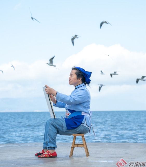 หลัว ลี่เจิน จิตรกรผู้สร้างผลงานชื่อ “ทิวทัศน์ในฤดูใบไม้ผลิของแม่น้ำเลาอวี๋เหอ” เป็นชาวคุนหมิงเช่นกัน ทะเลสาบเตียนฉือเป็นแรงบันดาลใจในการวาดภาพของเธอ ปลาจินเสี้ยนปา (ปลาชนิดหนึ่งในทะเลสาบเตียนฉือ) ในภาพวาดเป็นปลาที่มีเอกลักษณ์เฉพาะของท้องถิ่น ซึ่งเป็นภาพทิวทัศน์ที่แสนประทับใจของเธอ ภาพปลาจินเสี้ยนปา 9 ตัวบ่งบอกถึงความเป็นศิริมงคลและมีเงินมีทองเหลือกินเหลือใช้ทุกปี ส่วนดอกคอสมอสในภาพวาดซึ่งเบ่งบานในช่วงระยะเวลาอันสั้นช่วยเตือนให้ผู้คนหวงแหนช่วงเวลาที่งดงามของฤดูใบไม้ผลิ