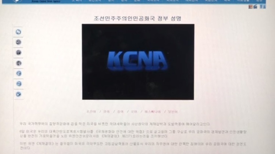 สำนักข่าวกลางเกาหลี (เคซีเอ็นเอ) เผยแพร่แถลงการณ์จากทางการเกาหลีเหนือระบุว่า มาตรการคว่ำบาตรของคณะมนตรีความมั่นคงแห่งสหประชาชาติ (ยูเอ็นเอสซี) มีสหรัฐเป็นผู้ชักใยอยู่เบื้องหลัง เพื่อโดดเดี่ยวเกาหลีเหนือ มาตรการดังกล่าวถือว่าเป็นการละเมิดอธิปไตยของประเทศอย่างร้ายแรง และเกาหลีเหนือจะไม่ยอมเจรจาหรือถอยโครงการอาวุธนิวเคลียร์แม้แต่ก้าวเดียว แม้จะต้องเผชิญภัยคุกคามจากสหรัฐก็ตาม สหรัฐจะต้องถูกเอาคืนอย่างสาสมหลายพันเท่า และว่า สหรัฐไม่ได้ปลอดภัยจากอาวุธของเกาหลีเหนือ ประเทศอื่นๆ ที่สนับสนุนสหรัฐก็เช่นกัน