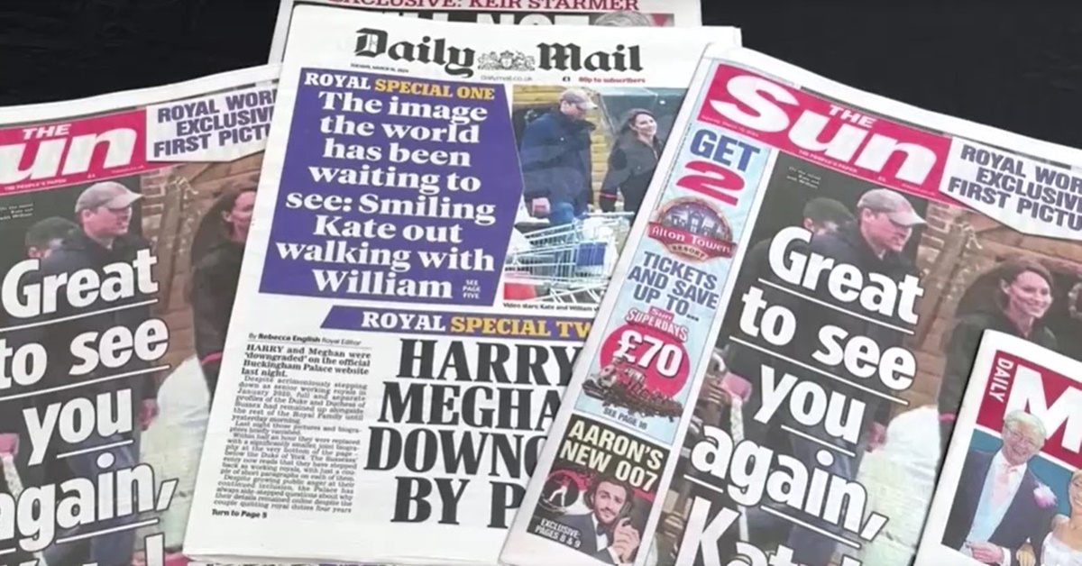 เจ้าหญิงแห่งเวลส์ พระชายาในเจ้าชาย วิลเลียม องค์รัชทายาทแห่งราชวงศ์อังกฤษ ทรงรับการผ่าตัดและพักฟื้นในโรงพยาบาลตั้งแต่เดือนมกราคมปีนี้ และเพิ่งมีการเปิดเผยภาพวิดีโอของพระองค์พร้อมกับเจ้าชายวิลเลียมเมื่อวานนี้ หนังสือพิมพ์เดอะซันและเดลีเมลได้นำภาพจากวิดีโอดังกล่าวมาตีพิมพ์ลงหน้าหนึ่งในหนังสือพิมพ์ฉบับวันนี้