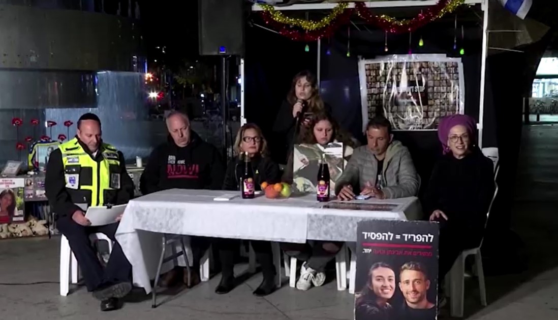 ครอบครัวของตัวประกันคนหนึ่งกล่าวที่จัตุรัสรำลึกถึงตัวประกันในกรุงเทลอาวีฟของอิสราเอลแสดงความเห็นหลังจากคณะมนตรีความมั่นคงแห่งสหประชาชาติหรือยูเอ็นเอสซี (UNSC) ผ่านญัตติเมื่อวันจันทร์ เรียกร้องให้อิสราเอลและฮามาสหยุดยิงโดยทันทีและปล่อยตัวประกันโดยไม่มีเงื่อนไขว่า ขอให้พาตัวประกันกลับบ้านก่อน จากนั้นจึงจะมีการหยุดยิง ขณะที่มารดาของตัวประกันคนหนึ่งขอให้ทางการอิสราเอลมีความกล้าหาญและแสดงความเป็นวีรบุรุษ ประชาชนพร้อมสนับสนุนพวกเขา หากพวกเขาสามารถสะท้อนจิตวิญญาณอันแข็งแกร่งและกล้าหาญของประชาชน ทั้งโลกก็จะชื่นชมและเป็นแนวร่วม