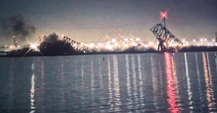 เว็บไซต์บิสซิเนสส์ อินไซเดอร์รายงานว่า มีผู้โพสต์คลิปผ่านเอ็กซ์ (X) ในช่วงเช้าวันนี้ตามเวลาสหรัฐ เป็นภาพเหตุการณ์ขณะที่เรือลำใหญ่ชนกับคานรองรับของสะพานฟรานซิส สกอตต์ คีย์ (Francis Scott Key Bridge) เห็นกลุ่มควันลอยขึ้นจากเรือ จากนั้นสะพานได้ทยอยพังลงไปในแม่น้ำ ขณะที่สำนักงานเครื่องกลเบย์แอเรียถ่ายทอดสดทางยูทูบเมื่อเวลา 01:28 น.วันนี้ตามเวลาท้องถิ่น เห็นเรือลำใหญ่ชนสะพานดังกล่าว จากนั้นเมื่อเวลา 03:00 น.เห็นโครงสร้างสะพานแตกเป็นส่วน ๆ และจมอยู่ในแม่น้ำ