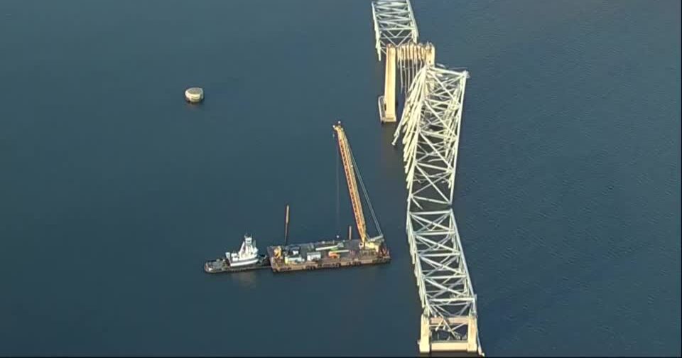 นายเวส มอร์ ผู้ว่าการรัฐแมริแลนด์แถลงข่าวเมื่อวันเสาร์ตามเวลาท้องถิ่นว่า โครงสร้างเหล็กด้านทิศเหนือของสะพานฟรานซิส สกอตต์ คีย์ (Francis Scott Key Bridge) ที่พังลงในแม่น้ำปาแทปสโก (Patapsco River) จะถูกตัดย่อยเป็นชิ้นใหญ่ 1 ชิ้น แล้วใช้เครนยกขึ้นเรือไปไว้บนบก เพื่อเปิดทางให้เรือท้องแบนและเรือลากจูงเข้าไปเร่งการกู้ซากสะพานได้เร็วขึ้น แต่ยังไม่สามารถระบุได้ว่าจะแล้วเสร็จเมื่อใด อย่างไรก็ดี ทีมกู้ซากจะยังไม่พยายามกู้ซากสะพานส่วนที่พังลงมาค้างอยู่บนเรือดาลี (Dali) และยังไม่แน่ชัดว่าจะสามารถเคลื่อนย้ายเรือที่เสียหายเมื่อใด