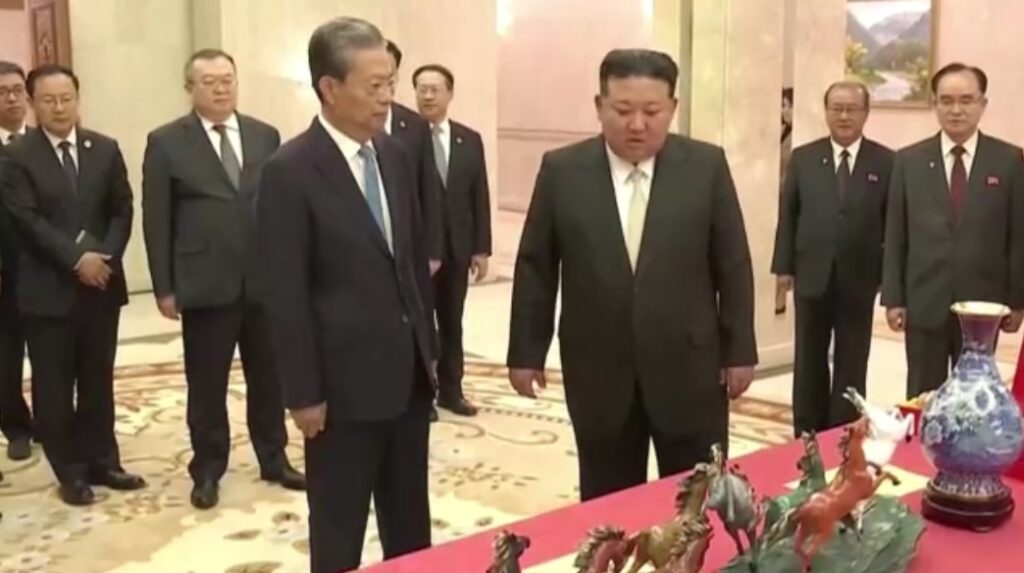 เปียงยาง 14 เม.ย. – นายจ้าว เล่อจี่ (Zhao Leji) ประธานคณะกรรมาธิการถาวรประจำสภาผู้แทนประชาชนแห่งชาติจีน พบกับนายคิม จอง อึน ผู้นำสูงสุดเกาหลีเหนือ ซึ่งดำรงตำแหน่งเลขาธิการใหญ่พรรคแรงงานเกาหลี ประธานกิจการรัฐแห่งสาธารณรัฐประชาธิปไตยประชาชนเกาหลี ที่กรุงเปียงยางของเกาหลีเหนือ เมื่อวานนี้