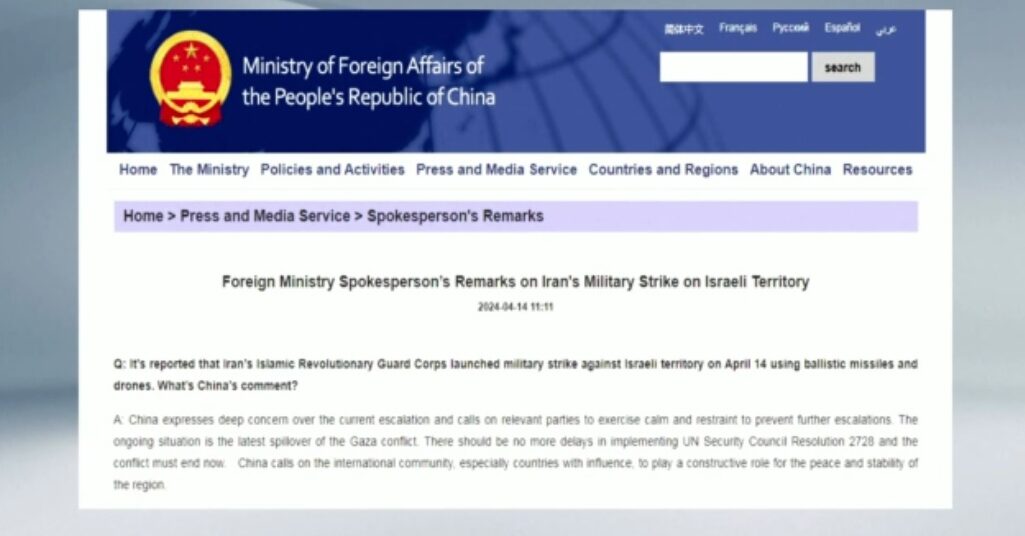 ปักกิ่ง 14 เม.ย. – กระทรวงต่างประเทศจีน กล่าววันนี้ว่า จีนรู้สึกกังวลเป็นอย่างยิ่งว่าความตึงเครียดในตะวันออกกลางจะลุกลามไปมากยิ่งขึ้น หลังจากอิหร่านใช้โดรนและขีปนาวุธระดมโจมตี เพื่อเป็นการแก้แค้นอิสราเอล