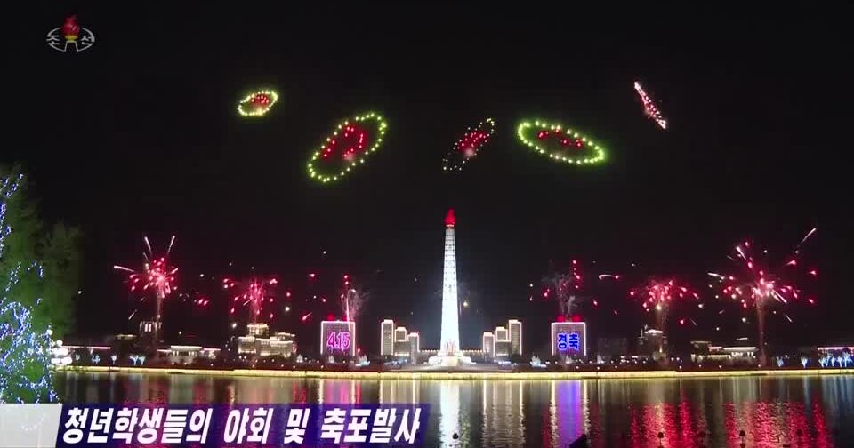 คลิปภาพที่เผยแพร่ทางโทรทัศน์เคอาร์ที แสดงให้เห็นนักเรียนหลายนพันคนเต้นรำอยู่ข้าง ๆ บอลลูนและแผ่นป้ายที่เขียนข้อความว่า “งานฉลอง 4.15” และการแสดงพลุและดอกไม้ไฟที่บริเวณจัตุรัสคิม อิล ซุล รายงานข่าวระบุว่า งานฉลองจัดขึ้นในคืนวันอาทิตย์ที่ 14 เมษายนที่ผ่านมา