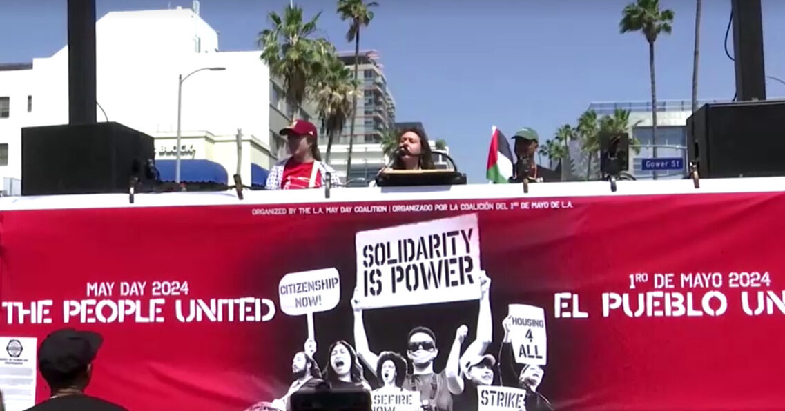 ลอสแอนเจลิส 2 พ.ค.- ขบวนชุมนุมเนื่องในวันแรงงานที่นครลอสแอนเจลิสของสหรัฐเมื่อวันที่ 1 พฤษภาคม ที่ตรงกับวันแรงงานสากล มีทั้งผู้ใช้แรงงานและผู้สนับสนุนปาเลสไตน์มาร่วมเดินขบวนเคียงข้างกัน