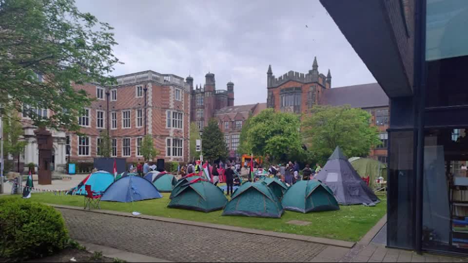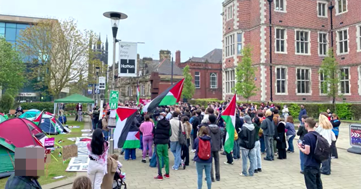 กลุ่มนักศึกษาได้ตั้งเต็นท์ปักหลักพักค้างในมหาวิทยาลัยนิวคาสเซิลของอังกฤษ ผู้ชุมนุมได้ติดธงของปาเลสไตน์เพื่อเป็นสัญลักษณ์ของการสนับสนุนและมีป้ายข้อความต่อต้านการทำสงครามในฉนวนกาซา ขณะที่มหาวิทยาลัยทั่วอังกฤษก็มีการเคลื่อนไหวของกลุ่มนักศึกษาที่แสดงความสนับสนุนปาเลสไตน์ด้วยเช่นกัน ทำให้เวลานี้มหาวิทยาลัยต่าง ๆ ได้กลายเป็นเวทีแสดงออกทางการเมืองในเรื่องปัญหาความขัดแย้งระหว่างอิสราเอลกับกลุ่มฮามาส
