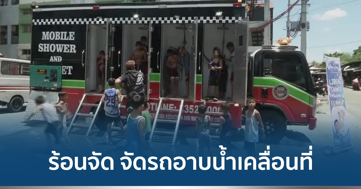 มะนิลา 2 พ.ค. – เมืองแห่งหนึ่งในกรุงมะนิลา นครหลวงของฟิลิปปินส์เปิดตัวรถอาบน้ำเคลื่อนที่เพื่อช่วยประชาชนในชุมชนคลายร้อนจากสภาพอากาศที่ร้อนจัดในขณะนี้