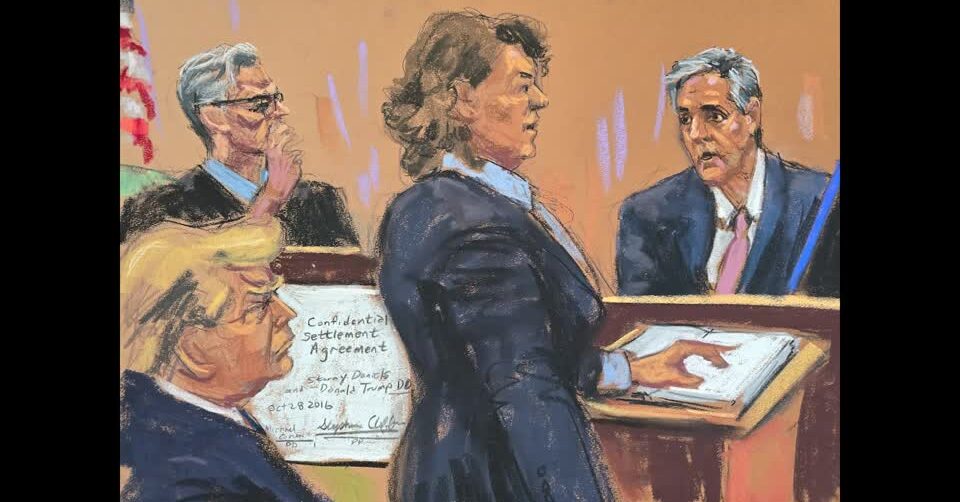 การพิจารณาคดีดำเนินมาเป็นวันที่ 16 เมื่อวันจันทร์ตามเวลาท้องถิ่น อัยการฝ่ายโจทก์ได้เรียกพยานปากสำคัญคือ นายไมเคิล โคเฮน ผู้ทำหน้าที่จ่ายเงินปิดปากให้กับทรัมป์ แล้วปลอมแปลงหลักฐานว่าเป็นเงินที่จ่ายให้เขาเพื่อเป็นค่าทนาย ซี่งเป็นจุดสำคัญในคดีเพื่อพิสูจน์ว่าทรัมป์วางแผนและสั่งการให้ปลอมแปลงการใช้จ่ายเงินเพื่อปกปิดความสัมพันธ์ชู้สาวของตนเอง โคเฮนให้การด้วยว่า ทรัมป์เคยกล่าวว่าจะมีผู้หญิงแบบนี้อีกมากมาย เขาได้ทำหน้าที่จ่ายเงินปิดปากให้กับหลายคน รวมถึงหนังสือพิมพ์ต่าง ๆ เพื่อให้ปกปิดข่าวฉาวของทรัมป์ที่จะกระทบกับความนิยมทางการเมือง ด้านทรัมป์กล่าวกับสื่อมวลชนภายนอกห้องพิจารณาคดี ยืนยันความบริสุทธิ์และกล่าวหาว่าเป็นคดีการเมือง