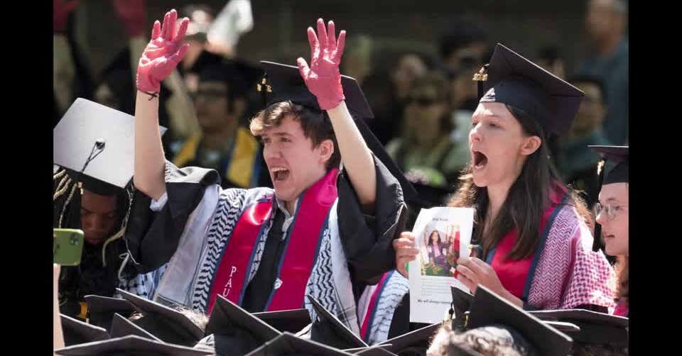 นิวเฮฟเวน 21 พ.ค. – บัณฑิตเป็นจำนวนมากวอล์คเอาท์ ไม่เข้าร่วมรับปริญญาของมหาวิทยาลัยเยลเมื่อวานนี้เพื่อประท้วงการทำสงครามชองอิสราเอลในฉนวนกาซา ความสัมพันธ์ของมหาวิทยาลัยเยลกับบริษัทผู้ผลิตอาวุธและเพื่อแสดงการสนับสนุนปาเลสไตน์